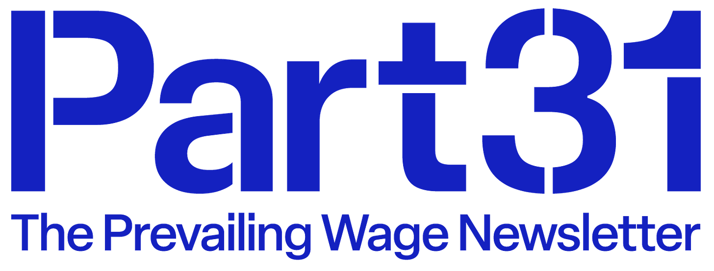 Welcome to Part 31: The Prevailing Wage Newsletter