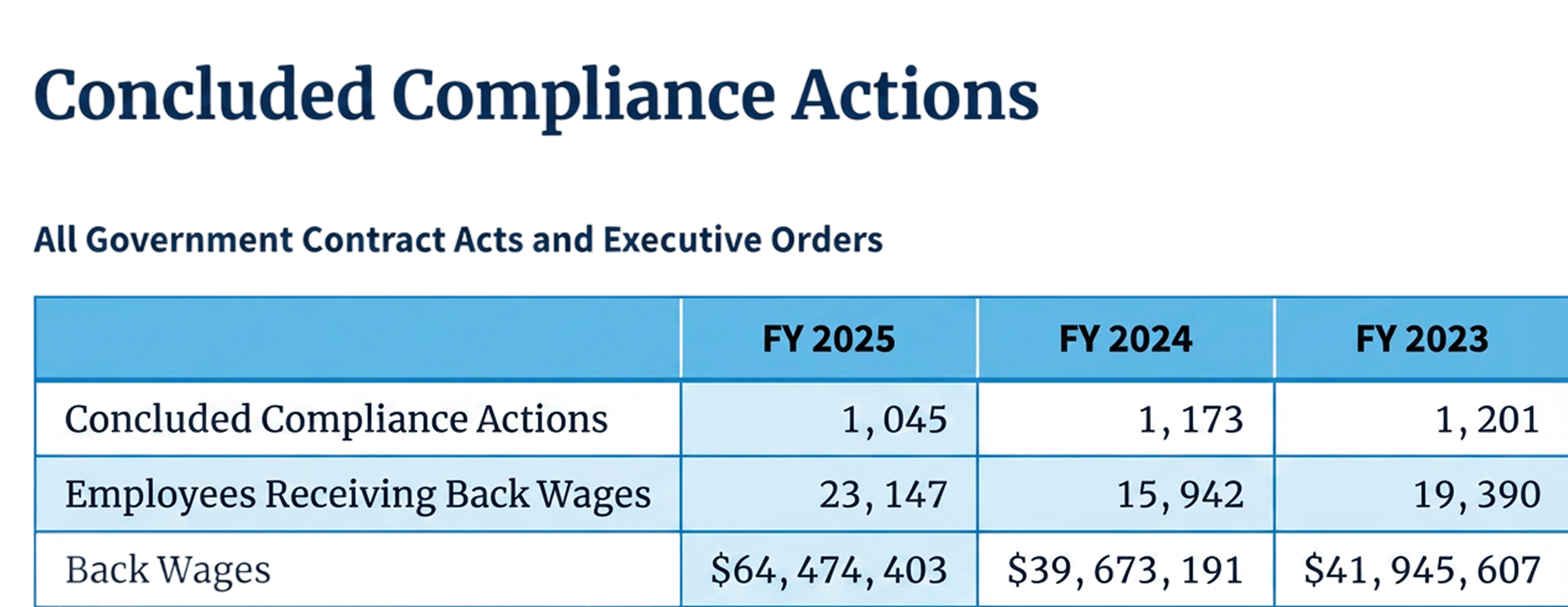 FY2025 SCA enforcement data is final. The number: $26.75M in back wages recovered from SCA contractors, up from $14.1M in FY2024. But here’s the part that should get your attention: WHD opened fewer cases (641 vs. 765) and found violations in fewer of them (445 vs. 548). The per-case recovery nearly doubled.